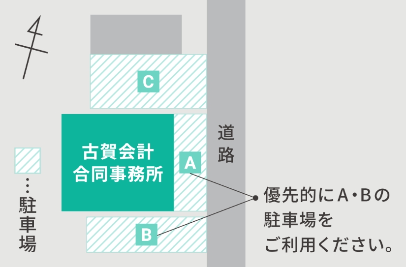 お車でお越しの際は上記画像の駐車場に停めてください。